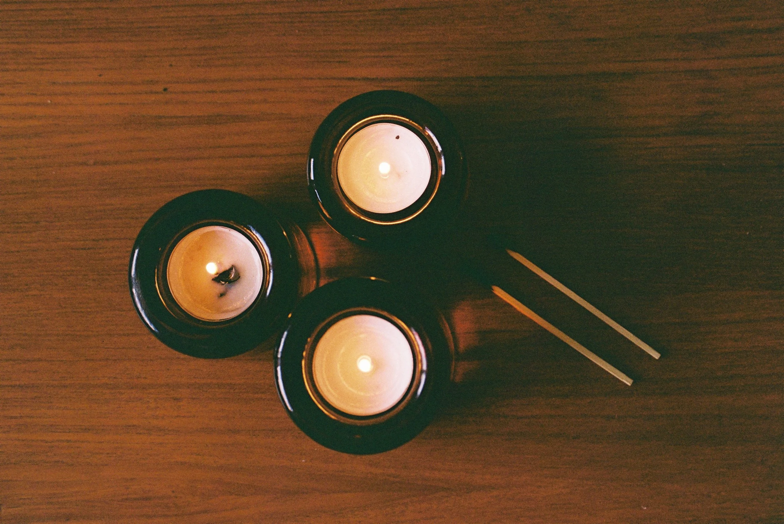 Just bara tre tända ljus på ett bord. Ett mänskligt avtryck i det ena. Kanske något vackert i det, eller inte.
