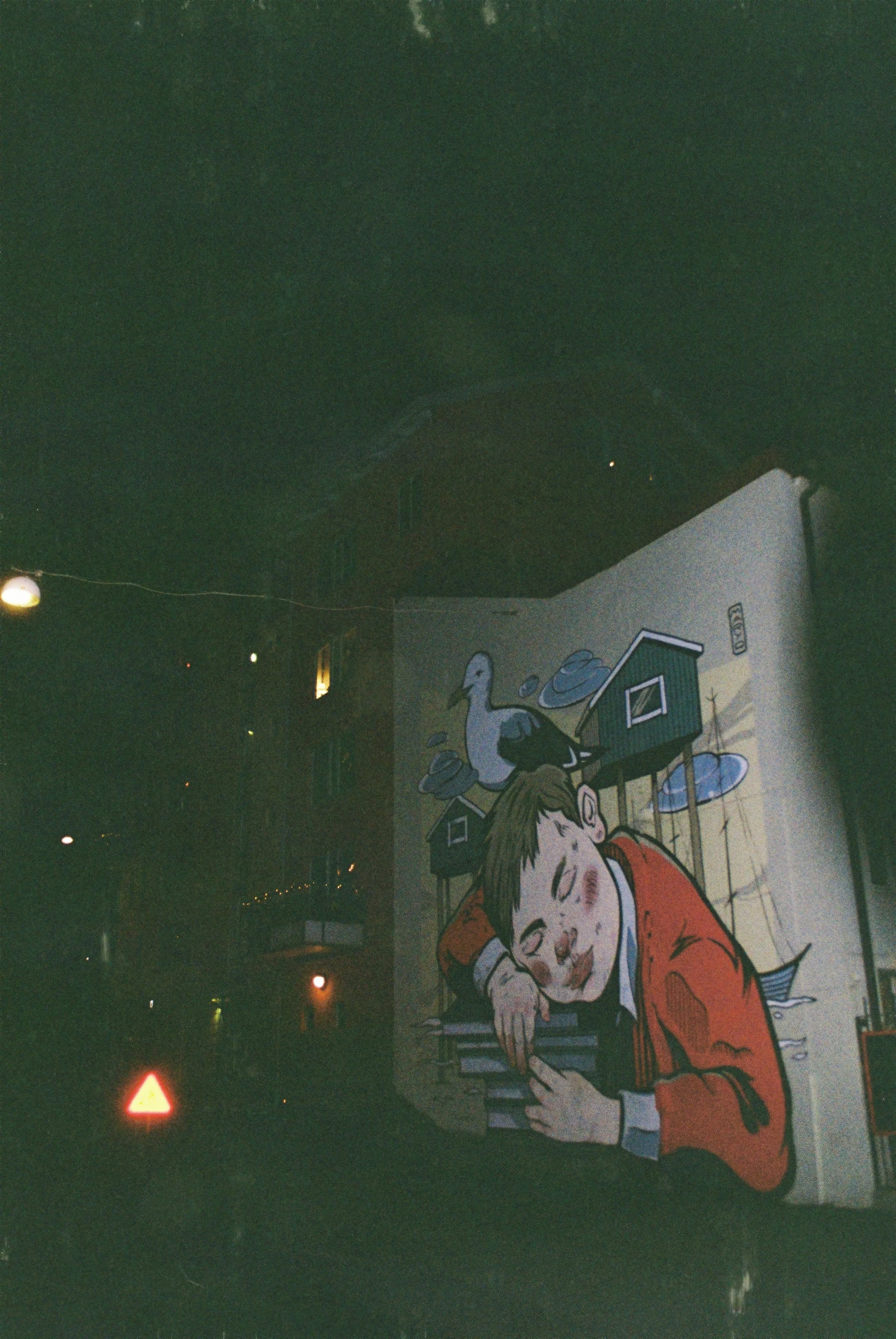 Med elegant detaljrikedom och livliga färger inspirerar denna målning besökare att reflektera och drömma. "Sleeping Boy" är ett fantastiskt exempel på hur gatukonst kan förgylla det offentliga rummet och föra samman människor i en gemenskap av kreativitet och inspiration.